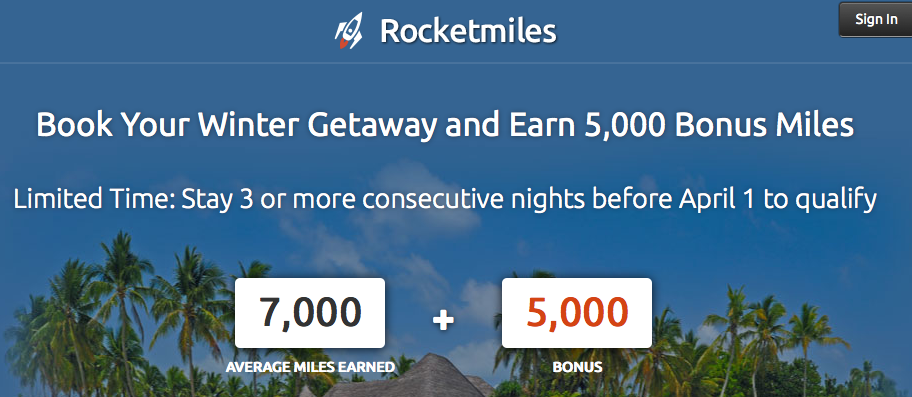 Rocketmiles for stays or 3 or more consecutive that are booked by December 18 and completed by April 1, 2014. You must book your stay via the special promotion page at www.rocketmiles.com/winter but if you are not a member of Rocketmiles yet you can join via our referral link