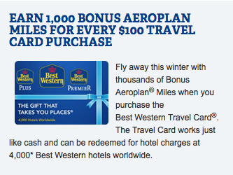 of bonus Aeroplan miles for buying Best Western Travel Cards, so if you