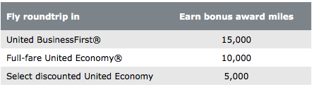bonus award miles for roundtrip travel in United BusinessFirst (J, C, D,