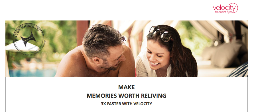 Earn up to Triple Velocity Points when you stay at properties within the Hilton HHonors™ portfolio Worldwide. Earn triple ponts in Asia Pacific, and double points anywhere else worldwide. Full details, online registration and booking (Registration is required) Until Jan 31, 15