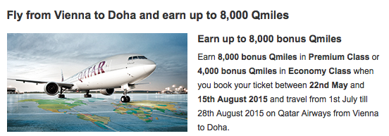 – Earn up to 8,000 Bonus QMiles when you fly between Vienna and Doha. More… Valid for residents of Austria only Jul 1 – Aug 28, 15