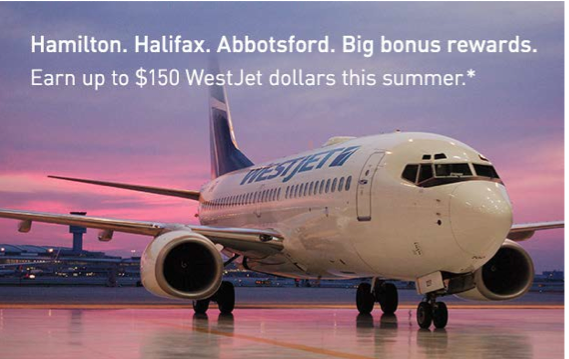 Earn up to $150 Bonus Westjet dollars when you travel to or from Abbotsford, Halifax or Hamilton on WestJet. Full details and online registration (Registration is required) Register and book by Aug 31 for travel until Oct 28, 15