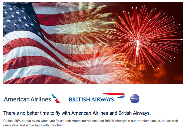 25% Bonus Avios when you register, book and fly one way with American