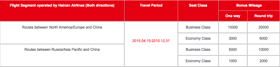Earn up to 20,000 Bonus Fortune Wings Miles when you fly on Hainan Airlines international flights. Register Online (Registration is required) Until Dec 31, 15