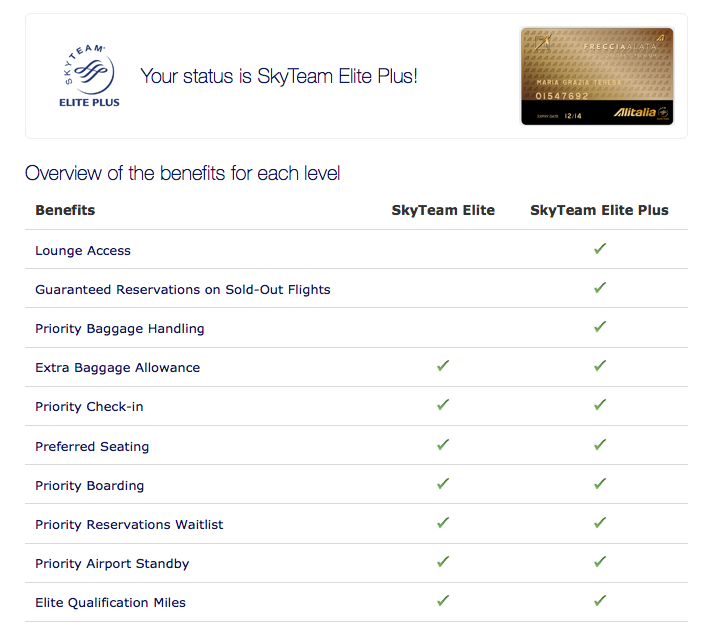 elite status with Alitalia and SkyTeam until the end of March next year