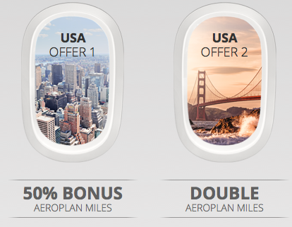 Earn 50% Bonus Aeroplan Miles per round-trip on select flights between Canada and the USA in Economy Class.