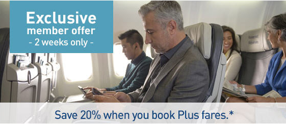 You can save 20% on WestJet Plus Fares for anywhere they fly if you book by Oct 5, 2015 (9:59PM MT) for travel Sep 21 – Dec 10 (Oct 8-13 are blacked out)