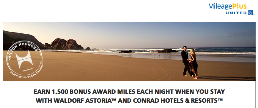 Astoria and Conrad Hotels & Resorts locations Worldwide. Maximum of 7,500 bonus miles awarded per stay. Full Details, online registration and booking (Registration is required) Oct 1 – Dec 31, 15