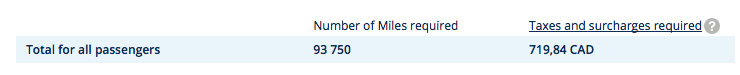 To buy the same tickets outright costs C$4,825.30. As you can see buying the miles can provide you a savings of over C$1,400 on these particular flights!