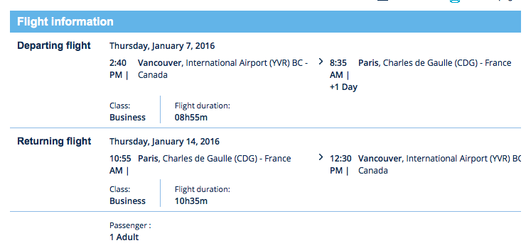 If you don’t live in Canada those miles will only cost you about C$2,553 saving an additional $125 or so. And the discount for these Flying Blue tickets is only 25% at this time, sometimes its 50% off so your savings could be even bigger.