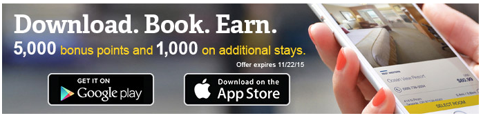 Earn 5,000 Bonus Rewards Points when you download the new Best Western to Go Mobile® app and book your next stay at a Best Western hotel through the app or on a mobile device. Then earn 1,000 bonus points for any additional stays you book through a mobile device. Full details Until Nov 22, 15