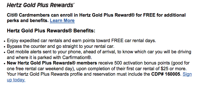Much like the AICPA offer we brought you in September, Citi cardmembers who have not joined Hertz Gold Plus Rewards can earn a free rental day when they join and complete their first rental.