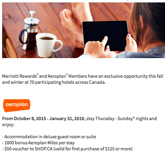 We tend to see an Aeroplan Marriott offer for stays in Canada several