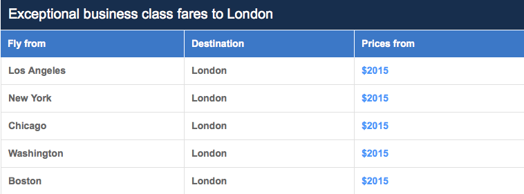 Here are sample fares from New York to London: