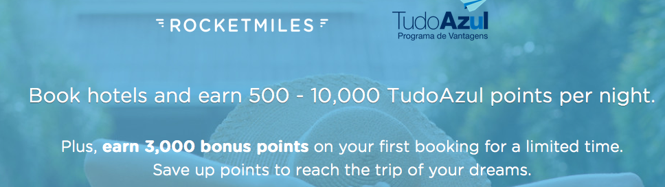 3,000 Bonus TudoAzul Points on your first Rocketmiles booking booked via the special promotion page at www.rocketmiles.com/tudoazul-3k-bonus. The bonus can only be earned once per member. Until Dec 31, 15
