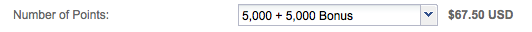 the maximum number of points, 60,000, it will cost you US$690 but of