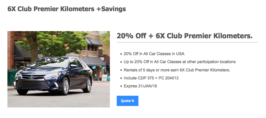 Earn up to 6x Club Premier Kilometers for Hertz rentals in