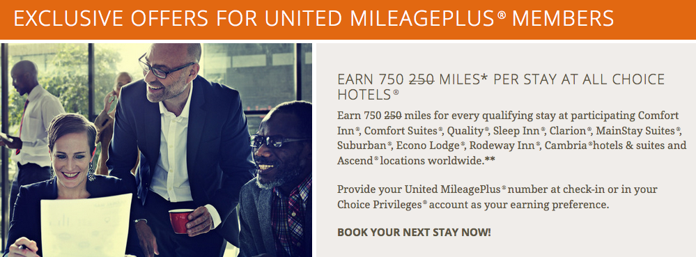 Choice Hotel stays to MileagePlus you’ll earn Triple Miles (750 miles)