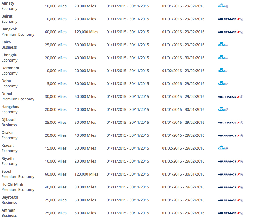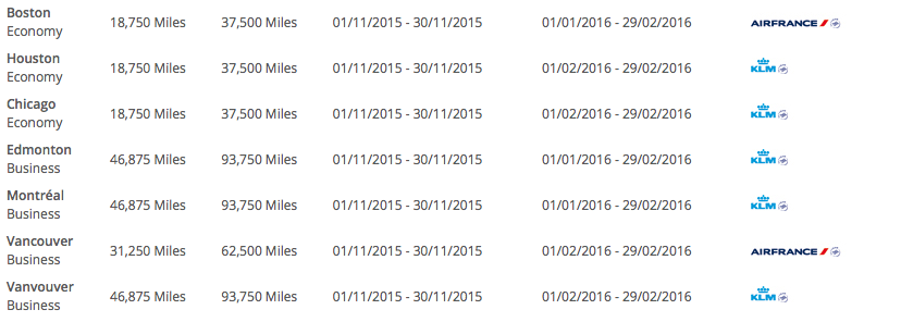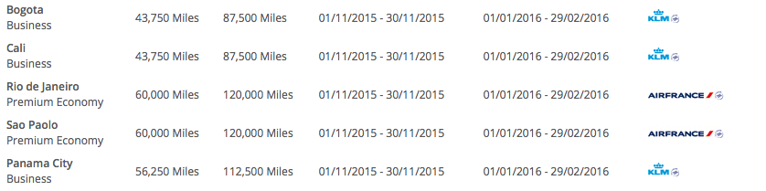 On Friday we were one of the first to bring you details of the latest set of Air France KLM Promo Awards letting you know that they were bookable as of November 1. Well it is November 1st and these offers are now bookable! We also have a nice new listing of all to/from Europe offers in the post.