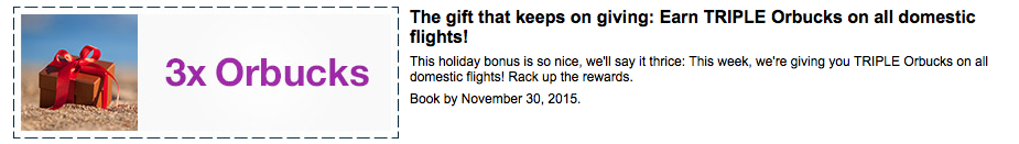 Triple Orbucks on all domestic flights. Full details and online booking Book by Nov 30, 15