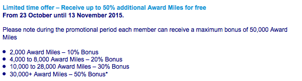 - 10,000 to 28,000 Award Miles – 30% Bonus