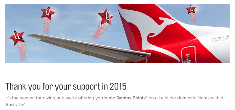 Triple Frequent Flyer Points on all eligible domestic flights within Australia. Register Online (Registration is required) Register and book by Dec 25 for travel until Jan 31, 16