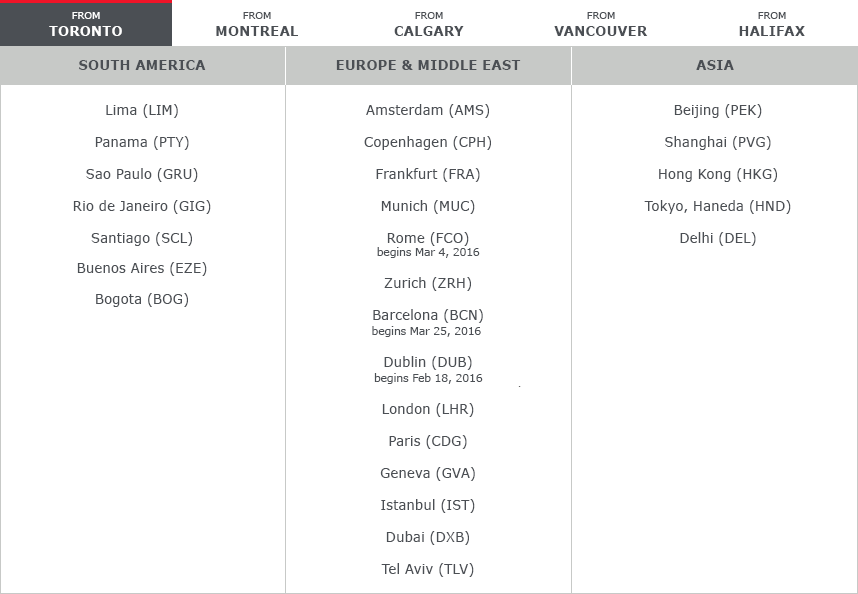 South America, Europe, the Middle East and Asia. Register Online (Registration is required) Register and book between Jan 21 and March 3, 2016 for travel by April 30, 2016