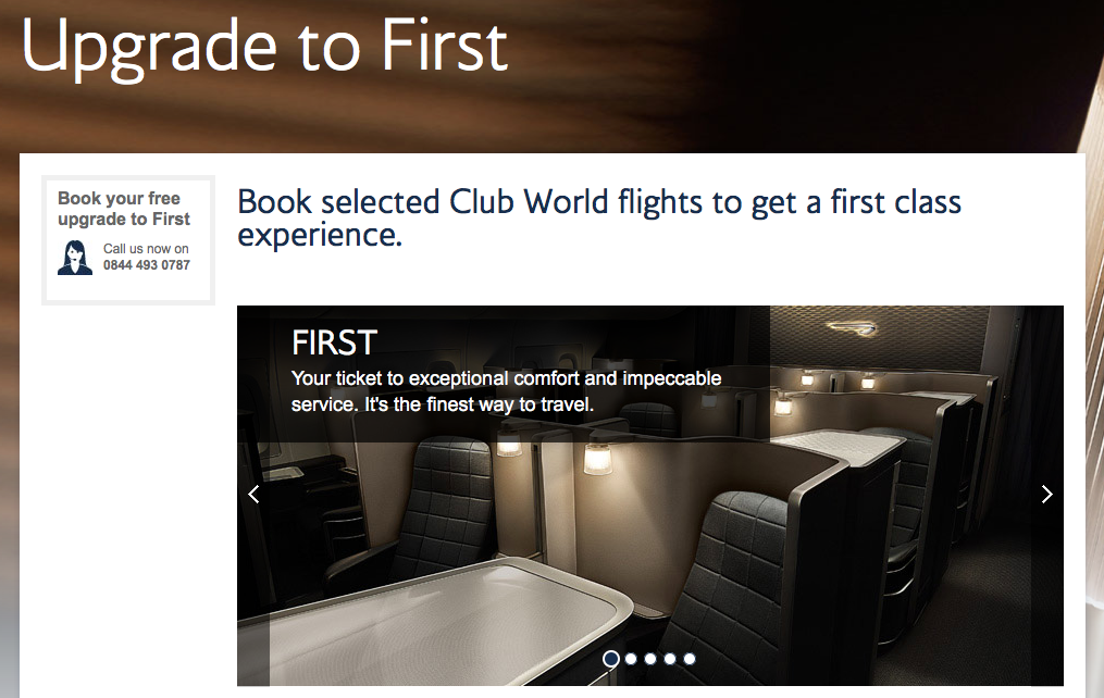 Receive a Free First Class Seat Upgrade when you book an eligible published semi-flexible R, D or C class, or a fully flexible J class Club World return ticket departing the U.K. Full details Book by Mar 11 for travel until Apr 19, 16