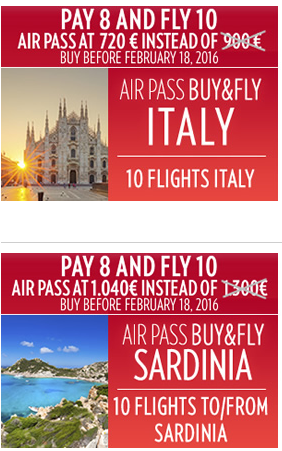 Meridiana has their Italy flight passes on sale! If you purchase them by Feb 18 you’ll get 10 flights for the price of 8! Find out more here.