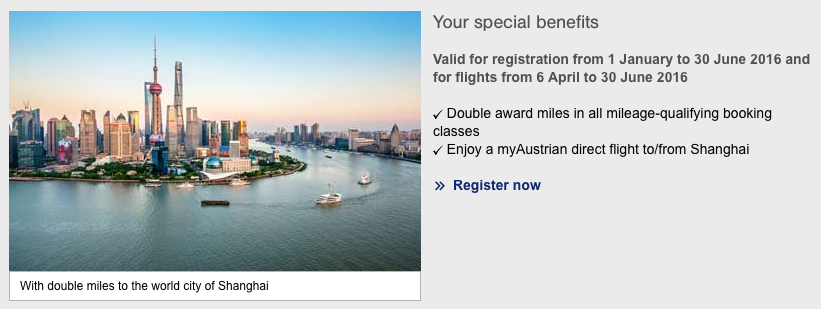 Double Miles & More Miles when you fly Austrian between Shanghai and Vienna. Register online (Registration is required) then book online at Austrian.com Apr 6 – Jun 30, 16