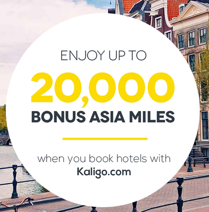 Earn up to 20,000 Bonus Asia Miles when you book hotels via Kaligo. Full details Book by Apr 8 for stays until Dec 31, 16
