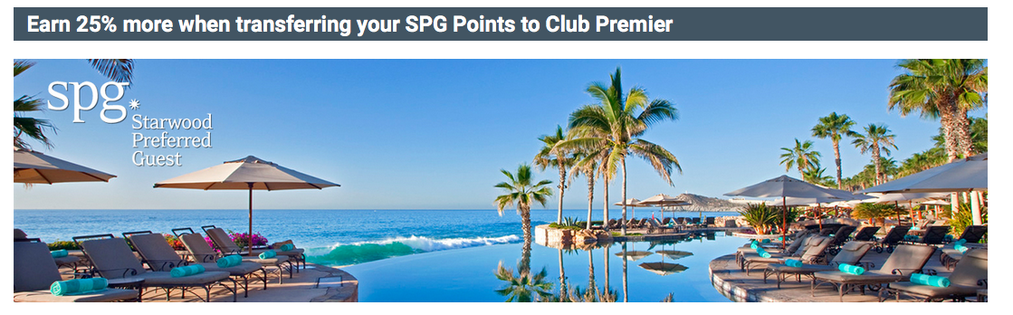 25% Bonus Club Premier Points when you convert Starpoints into Club Premier Points. Full details Until Apr 30, 16