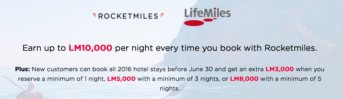 – Earn up to 8,000 Bonus LifeMiles on your first Rocketmiles booking . More… Until Jun 30, 16