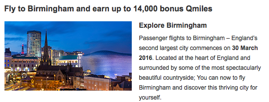 – Earn up to 14,000 Bonus QMiles when you fly between Birmingham and Doha. More… Until Jun 30, 16