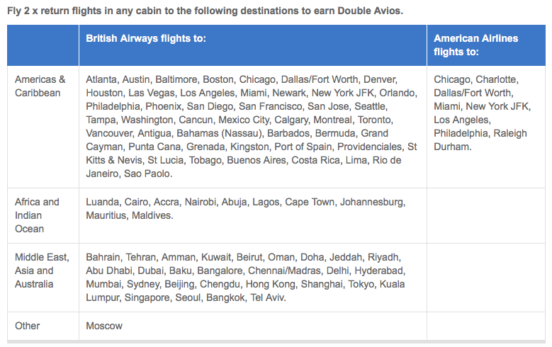 Double Avios when you complete two (2) long haul round trip flights on British Airways and/or American Airlines out of the U.K. Full details, online registration and booking (Registration is required) Until Jul 31, 16