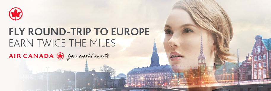 Double Aeroplan Miles for each round trip or 2 one way segments flown between Canada and Europe.
