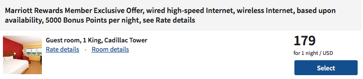 A check of rates from May 16-17 shows a Marriott Rewards Member standard nightly rate of US$175,