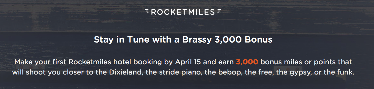 special promotion page at www.rocketmiles.com/jazz-3k. The bonus can only be earned once per member. Book by Apr 15, 16