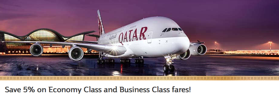 You can save an extra 5% on Qatar Airways flights out of the U.K. when you use the code ‘FLYFIVE’ for your online booking. This offer is valid for bookings until April 18 for travel until December 15th!