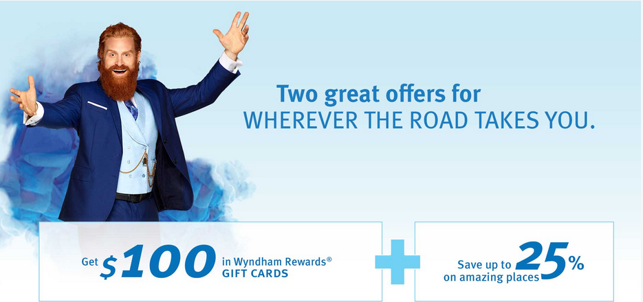 $100 in Wyndham Rewards gift cards when you complete two qualified
