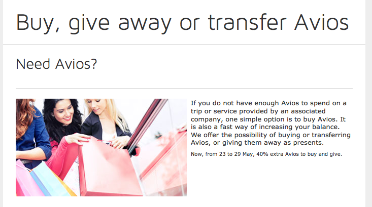 40% Bonus Avios when you buy or gift Avios online. Full details Until May 29, 16