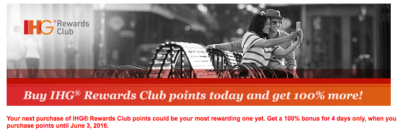 100% Bonus IHG Rewards Club Points when you buy points online. Minimum purchase of 11,000 points. Full details. Until Jun 3, 16