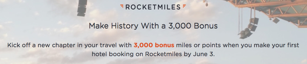 special promotion page at www.rocketmiles.com/goal-3k. The bonus can only be earned once per member. Book by Jun 3, 16