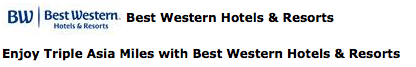 Triple Asia Miles for stays at any Best Western Hotel Worldwide.