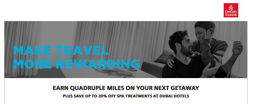 Quadruple Skywards Miles when you stay at participating Hilton hotels in the Middle East. Full details, online registration and booking (Registration is required) Until Nov 30, 16