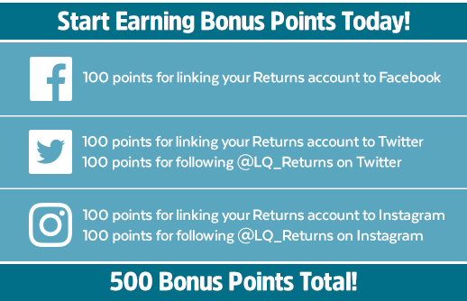 - Tweet or Instagram with #LQReturns and get 50 points.