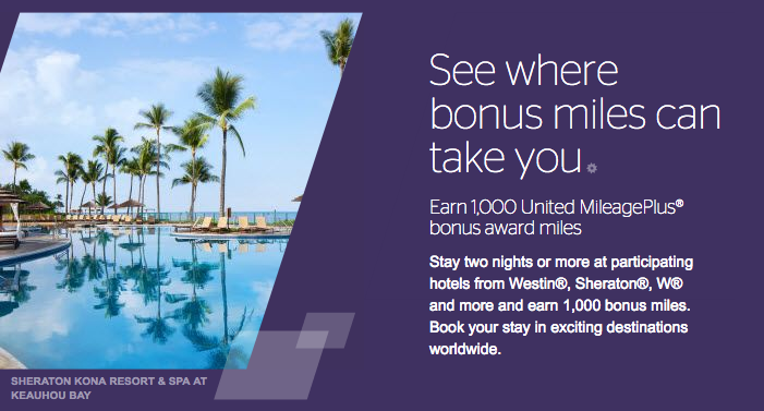 Earn 1,000 Bonus MileagePlus Miles for stays of 2 or more nights at participating Starwood Hotels Worldwide. Full details & online booking Until Dec 31, 17