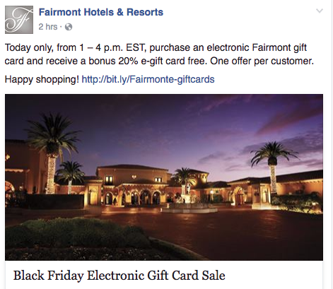 For the next three hours you can get a nice bonus if you buy Fairmont Hotels electronic gift cards! They will award you an additional 20% Gift Card on one purchase. Gift cards may be purchased online in any denomination ranging from $50 to $2,000 (CAD or USD) which means you can gain up to an extra $400 to use on your Fairmont Hotel stays! For many of their hotels that’s like an additional night for free!
