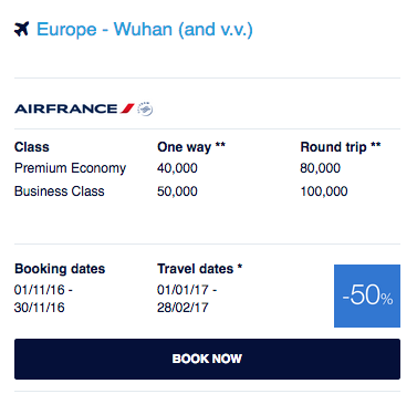 notable 50% off offers this month and they are between Europe and select Middle East destinations like Amman & Tehran but also Chinese destinations likes Wuhan and Xiamen. This month