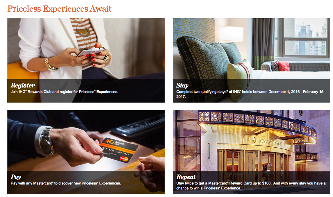 IHG Hotels Worldwide and pay for those stays with MasterCard. One stay